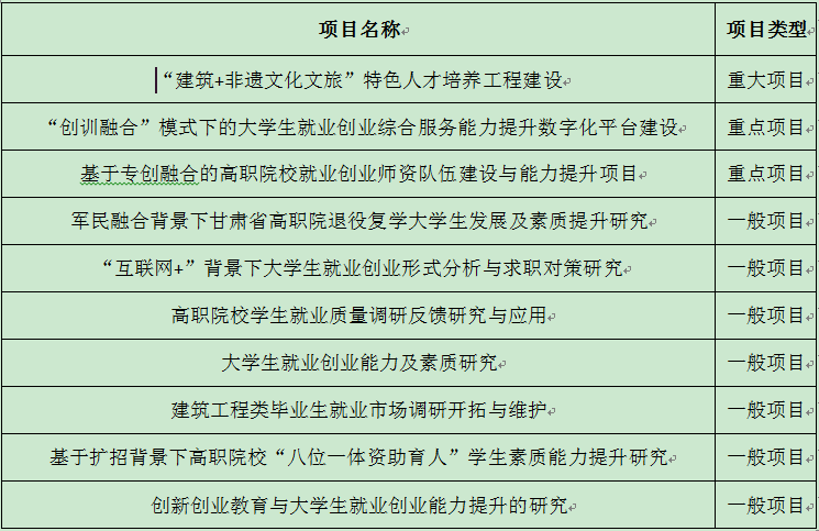 根据《甘肃省教育厅关于开展2021年度甘肃省高校大学生就业创业能力提升工程项目申报工作的通知》(甘教学函〔2021〕5号)文件精神,经学院师生团队申请,学院组织评审,决定《“建筑+非遗文化”特色人才培养工程建设》等10个项目进行公示。
