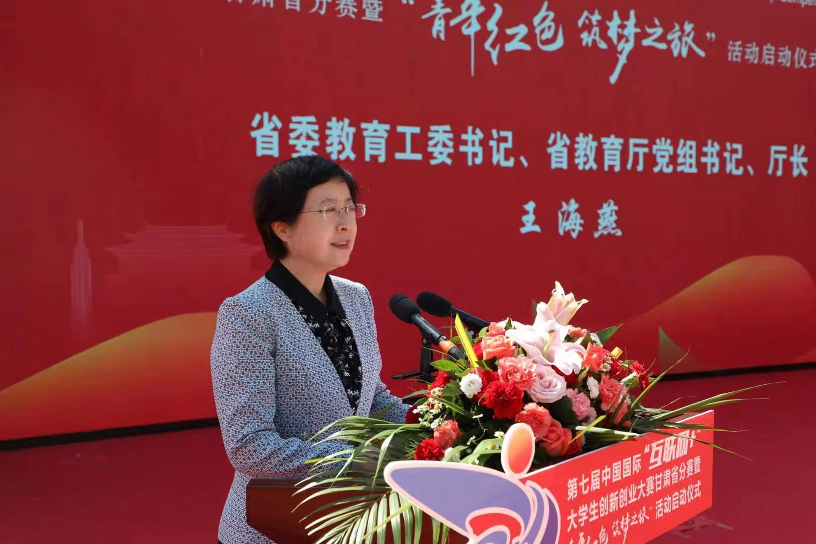 6月22日上午,由甘肃省教育厅主办的第七届中国国际“互联网+”大学生创新创业大赛甘肃省分赛暨“青年红色筑梦之旅”活动启动仪式在庆阳市华池县南梁革命纪念馆前广场隆重举行。甘肃省人民政府副省长张世珍、甘肃省教育厅厅长王海燕、庆阳市市长卢小亨、甘肃省教育厅副厅长张国珍、中国建设银行股份有限公司甘肃省分行行长宋涛、中国电信股份有限公司兰州分公司副总经理魏勇、全省各高校师生代表等相关人员参加活动。我院许洁副院长带领创业中心及学生代表参加了启动仪式,学院副院长李君宏主持并同在校师生观看了活动直播。