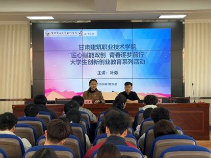 3月26日,甘肃建筑职业技术学院“匠心赋能双创·青春逐梦前行”大学生创新创业系列活动成功举办。本次活动特邀中国国际大学生创新大赛网评及决赛评审专家叶勇主讲,通过专题分享与互动交流,为师生搭建了高质量的学习平台,助力创新创业教育提质增效。